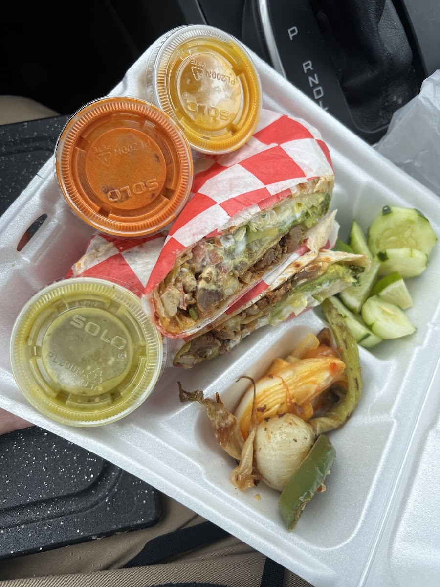 Had a burrito pastor from their food truck. The food was so fresh. 3 different sauces that were all excellent. Fresh cucumber salad, lightly dressed. Fresh lime….